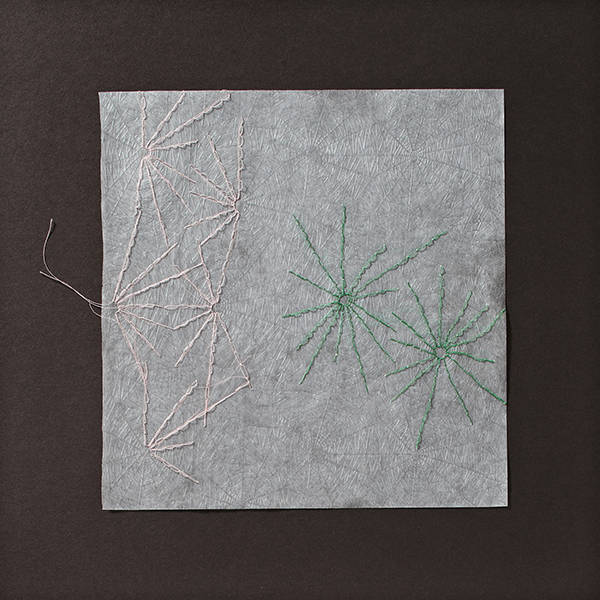 Nadelarbeiten in Pergaminpapier 1-15 Bestickung der rausgerissenen Zwischenblätter eines ehemaligen Fotoalbums. Aus dem Rest des Buches ist „zartes Rosa” entstanden. 2014 / 2015 Fotos: Sigurd Steinprinz |